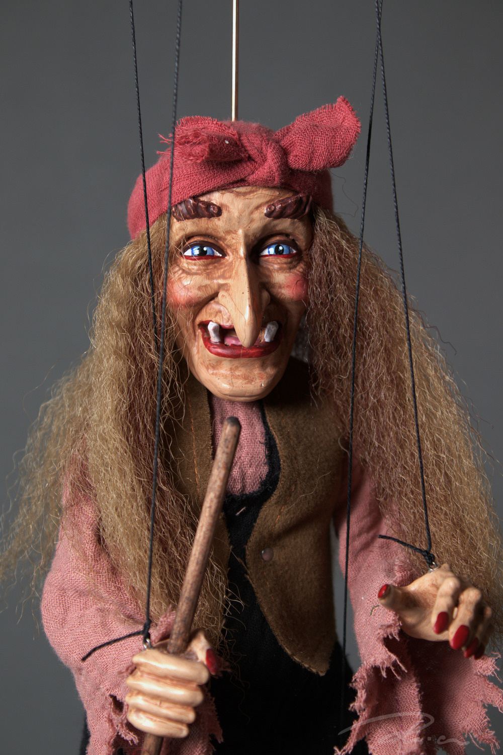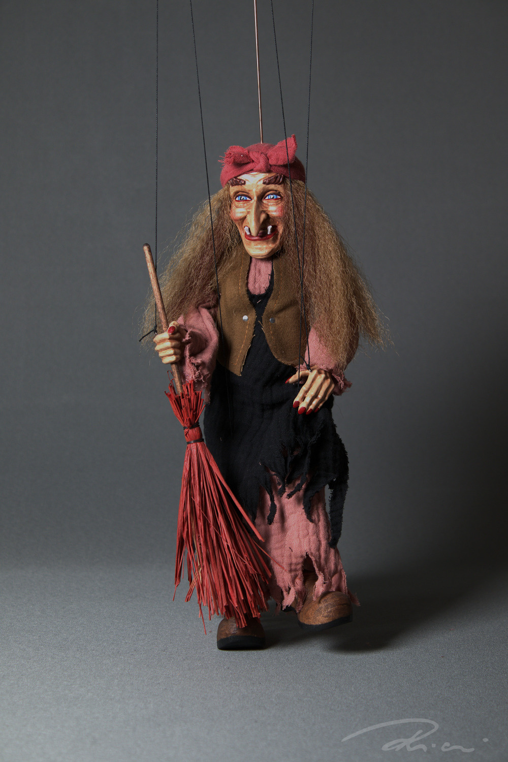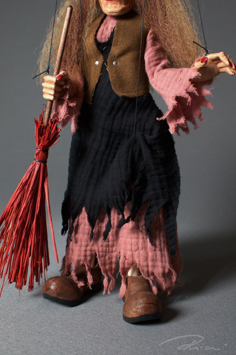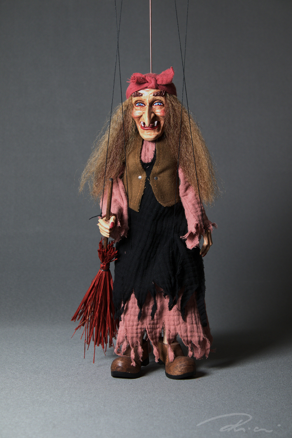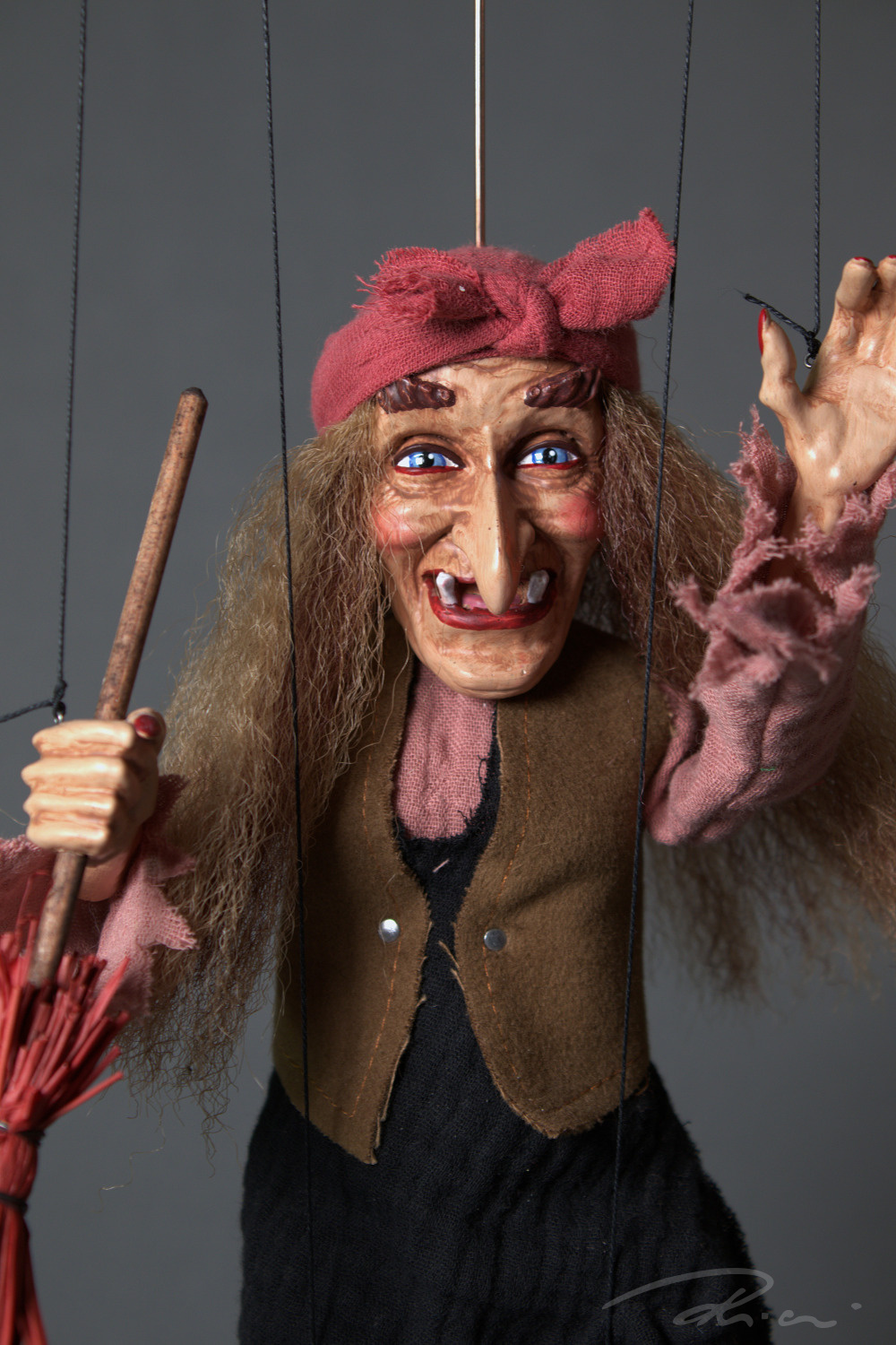 Již při prvním pohledu si každý vzpomene na chaloupku na kuří noze a Babu Jagu z ikonického filmu Mrazík. Každý detail loutky, od přesného malování výrazného obličeje, typického potrhaného oděvu až po její dopravní prostředek - koště, je pečlivě ručně vyrobenu nás v ateliéru Rici Marionettes. Přeneste se do pohádky u vás doma a nechte Baba Jagu ožít ve vašich rukou.